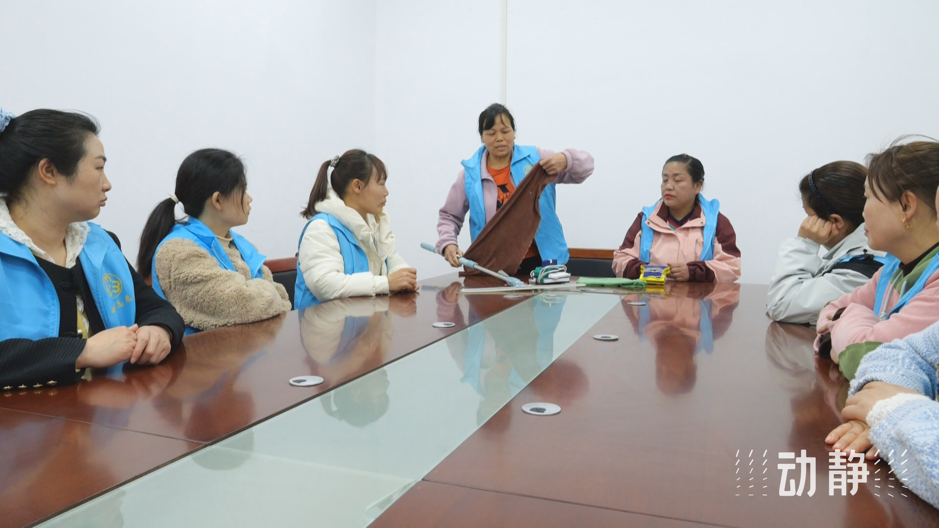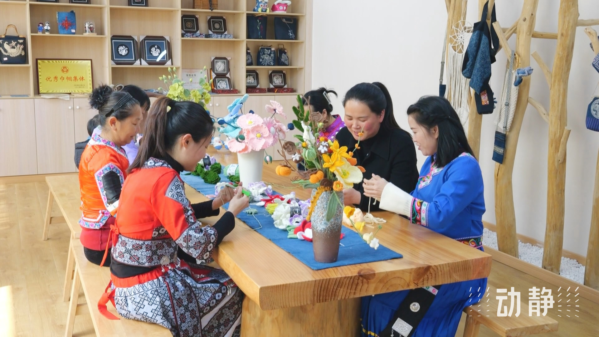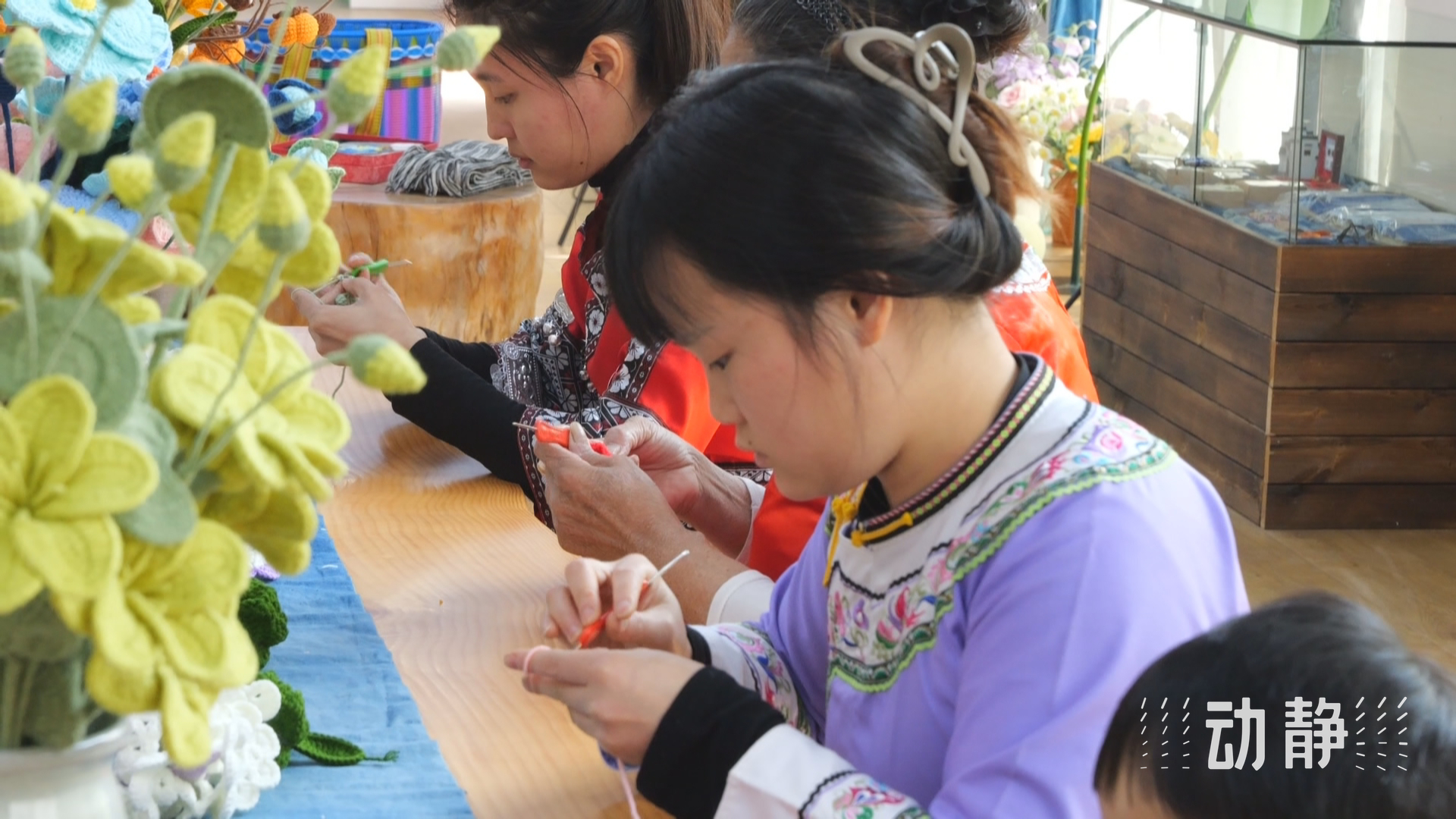 今年28岁的杨水莲是编织队的一员,因为去年在网上刷到很多编织玩偶的视频,精美的编织成品深深吸引了她,便逐步上手学习。经过半年多的时间,她已然成为队伍里的能手。杨水莲说:“来这里学习了一门手艺,增加了一份收入来补贴家用,挺满意的。”
