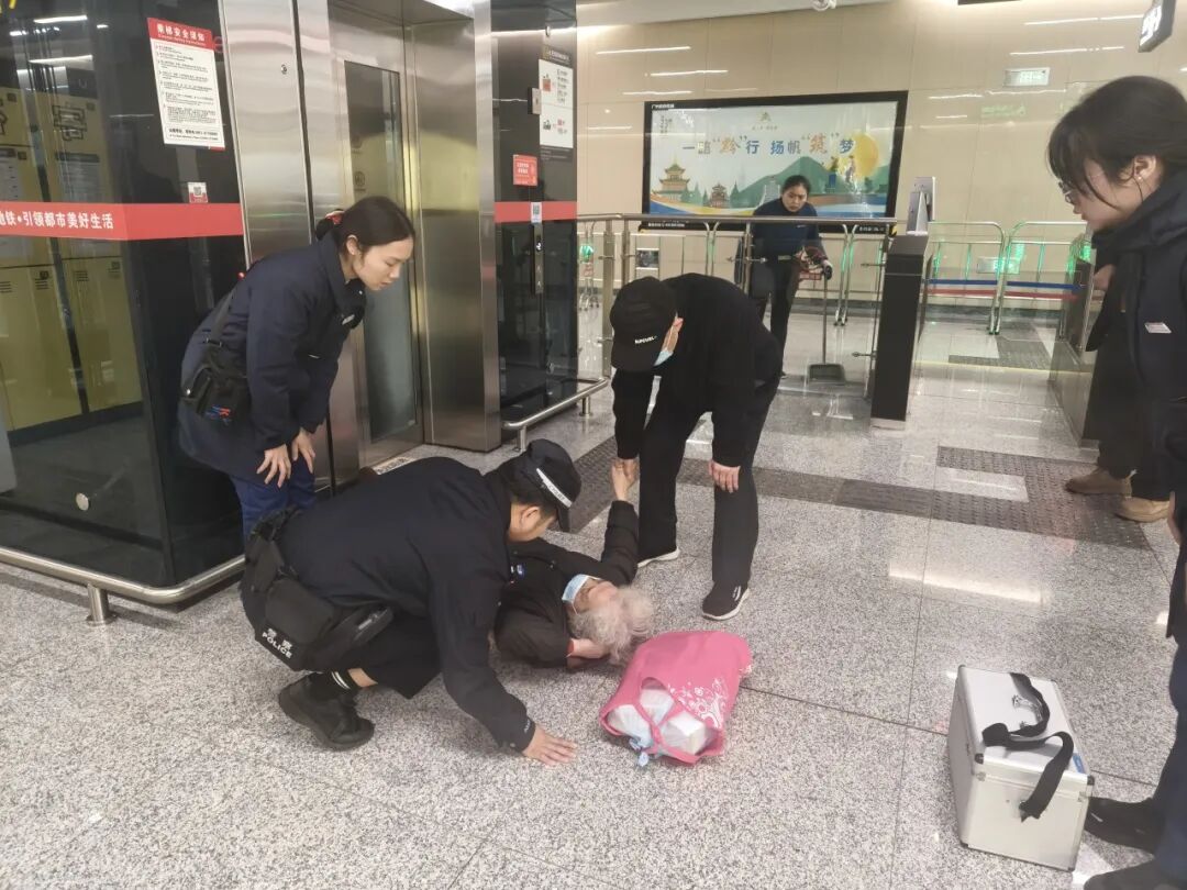 守护在身边!老人地铁站内不慎摔倒,关键时刻他们及时出现