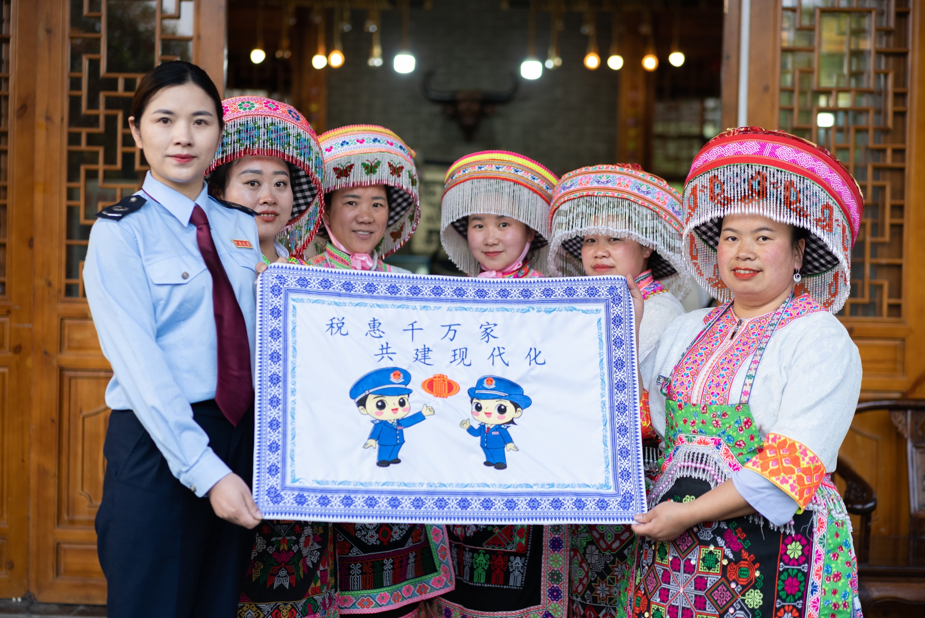 党建+阵地建设,树模范机关新形象。桐梓县税务局始终坚持纵合横通强党建,把培养民族团结意识与主责主业相结合,把服务民族团结发展与服务地方经济社会发展相结合。积极支持民族特色企业、技艺发展,深入苗乡宣传税费政策,助企“充电续航”,让企业无顾虑,快速步入高质量发展快车道。结合税收宣传月时机,拍制“税惠穿针引线 绣出苗乡致富花”宣传视频,邀请马鬃苗族乡“黔绣工匠”制作“税惠千万家 共建现代化”主题刺绣作品,有力助推税收宣传,展现民族融合发展壮丽“绣”卷。2023年荣获全市民族团结进步示范机关。