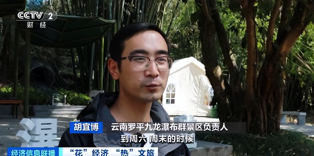 云南罗平九龙瀑布群景区负责人 胡宜博:随着罗平油菜花大范围花开,九龙瀑布游客量也迎来高峰,入园日均游客量大约在3000人次,周末又会迎来一个小高峰,游客量会达到5000到6000人次。
