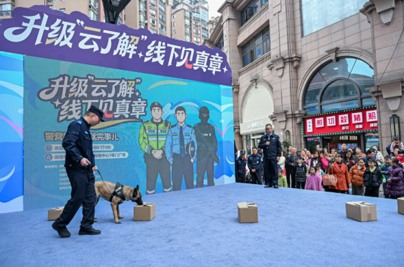 警犬表演更是全场高光,专业警犬听令行事,精准完成一系列动作,还能从一堆箱子里快速找出可疑物品,超强执行力让现场掌声不断,小朋友们激动地跳起来喊“警犬好厉害!太酷了!”,还有小朋友追着民警叔叔问“能不能和警犬合个影呀?”,热闹又温馨。警用装备体验区更是排起长队,大人小孩都在民警指导下近距离接触各类警用装备,亲手摸一摸、试一试,有人感慨“从小就想当警察,今天终于摸到真的警用装备了,圆梦了!”,直呼太过瘾!