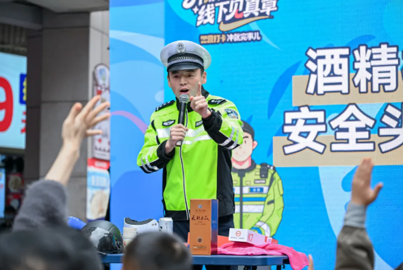 交警叔叔的表演更是干货满满又趣味十足,现场模拟酒精检测、演示安全头盔防护测试,还邀请台下群众上台亲身体验,参与的市民笑着说“这下彻底记住酒驾的危害了,头盔也必须戴好!”,围观的群众也跟着点头附和,沉浸式学习根本不枯燥,大人小孩都抢着举手要参与。