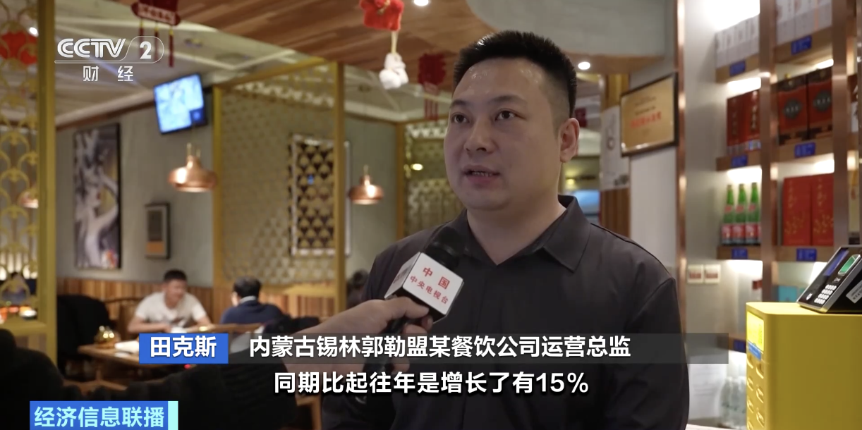内蒙古锡林郭勒盟某餐饮公司运营总监 田克斯:销售额比起往年同期增长了15%,区外的游客能占到40%。