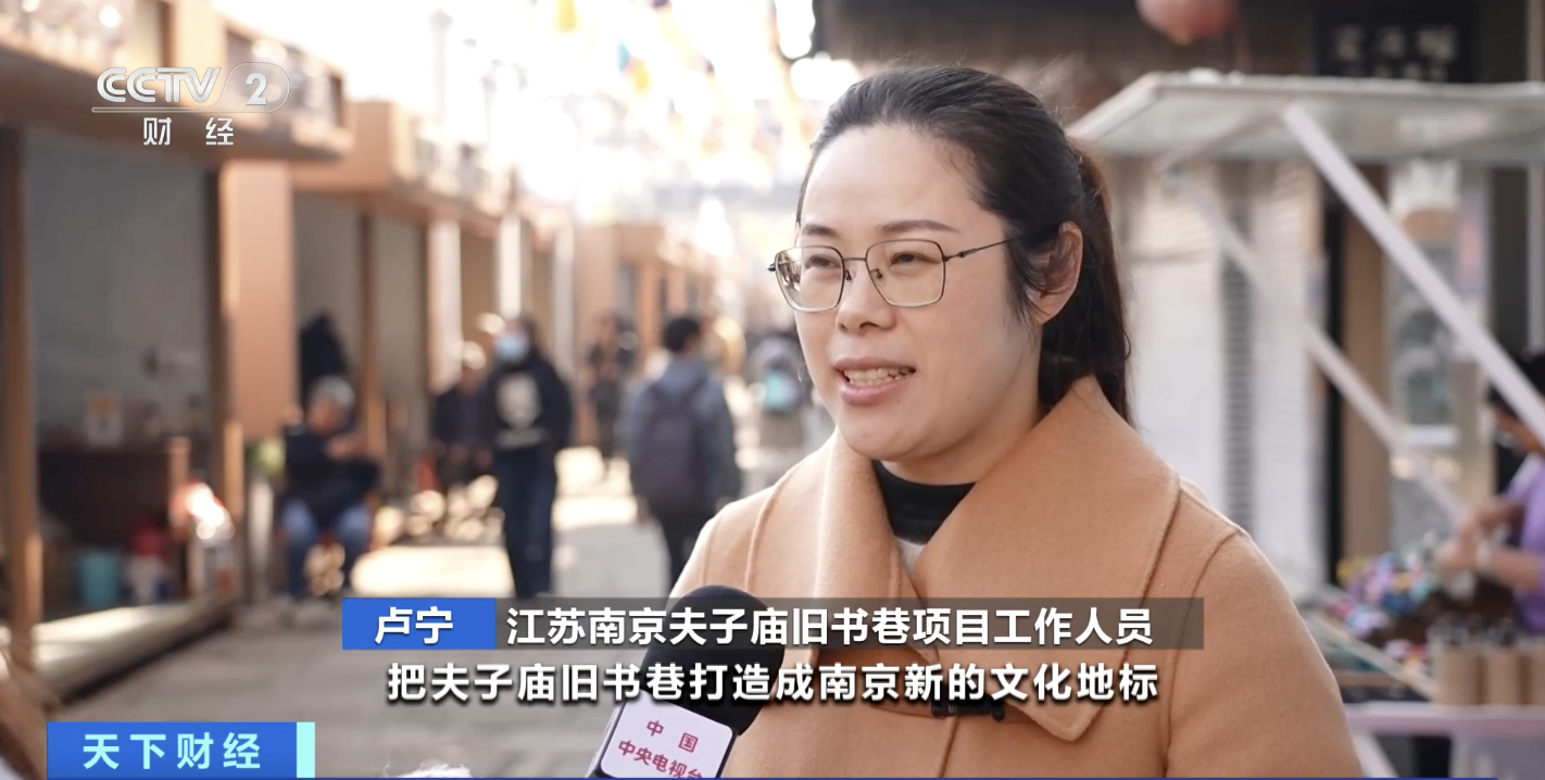 江苏南京夫子庙旧书巷项目工作人员 卢宁:把夫子庙旧书巷打造成南京新的文化地标,大家什么时候来都能淘到好书、聊到书友。也打算把旧书巷跟夫子庙周边的景点、美食、文创连接起来,开发新的旅游线路,让大家逛完书巷就可以去打卡,形成消费闭环。