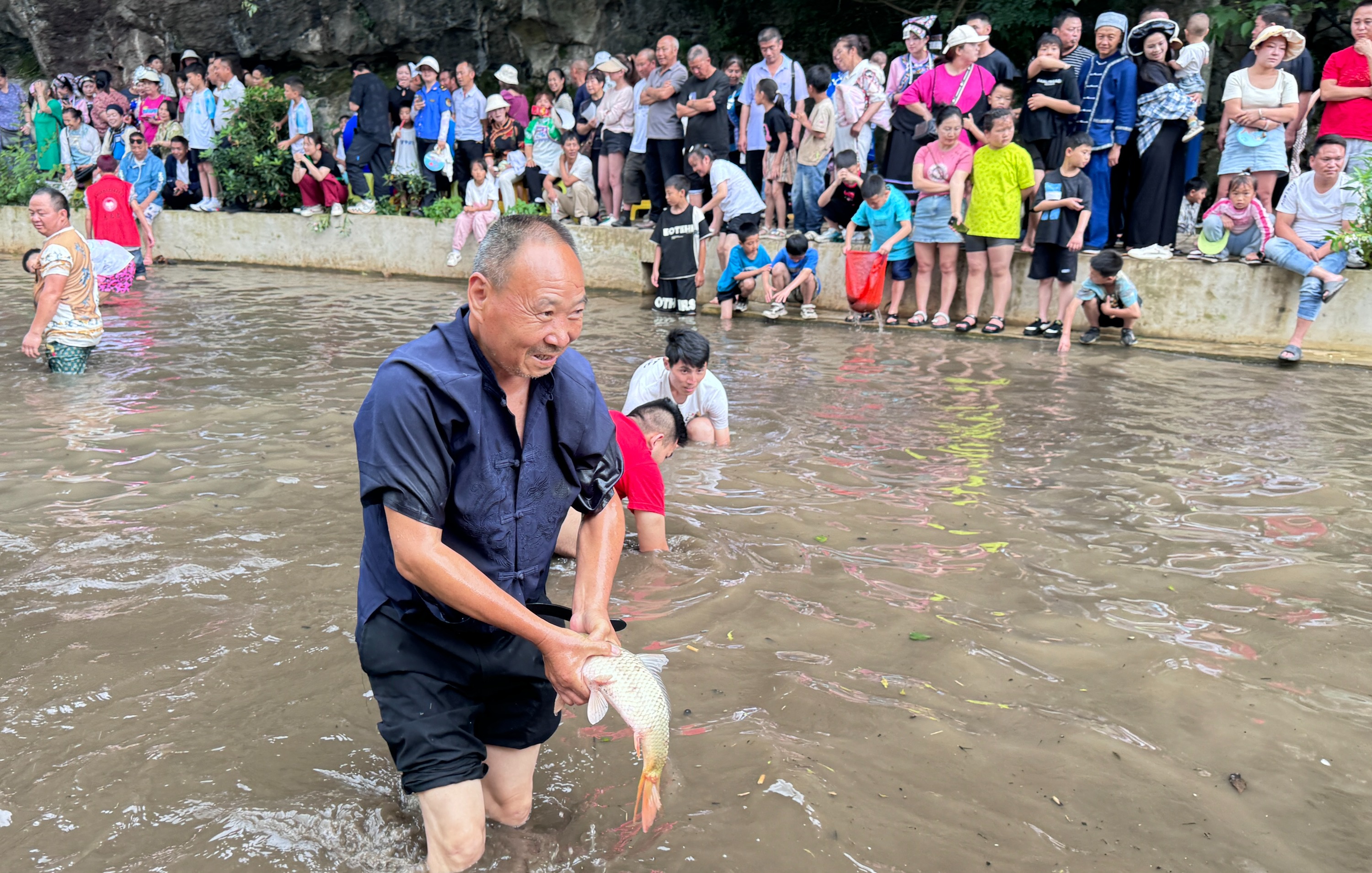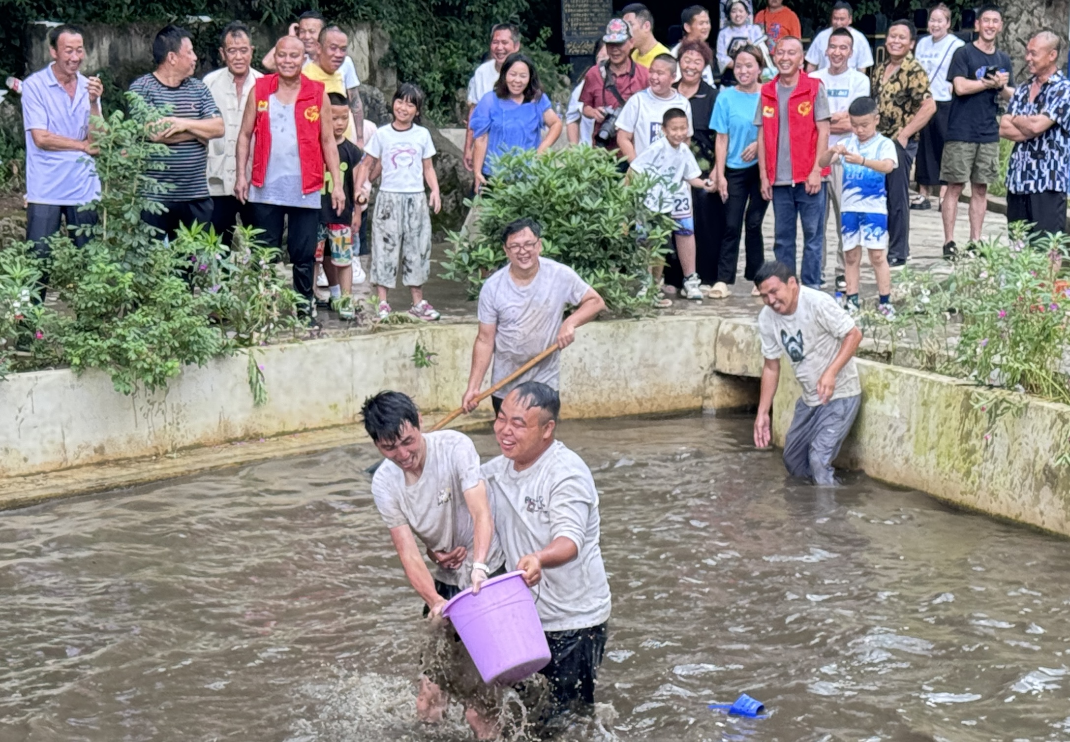 歌舞文艺表演间隙,还有打糍粑、池塘抓鱼、刺绣等活动,让前来游玩的游客在欢声笑语中,更深刻的领略到布依族文化的独特韵味,实现心灵与文化的双重共鸣。