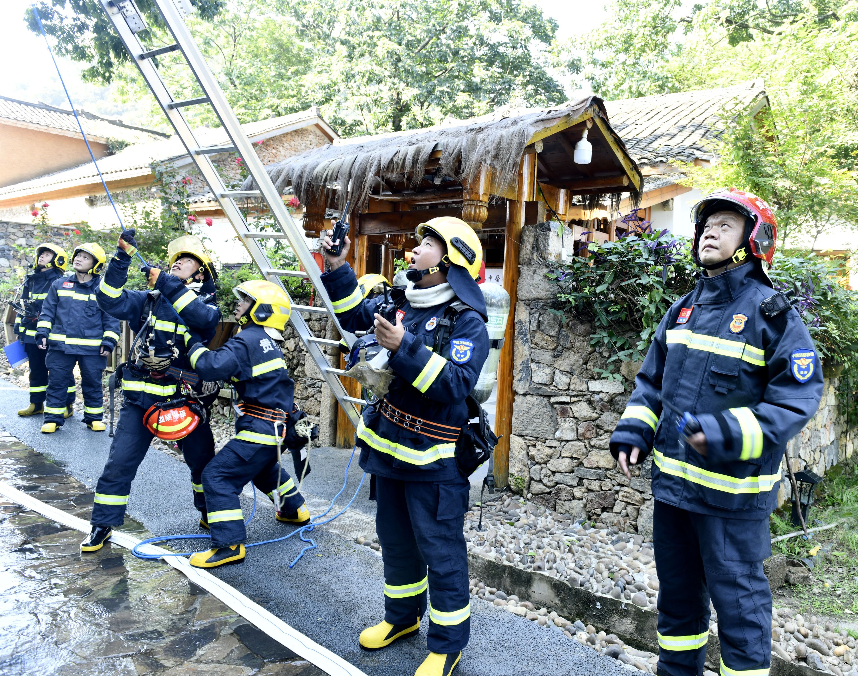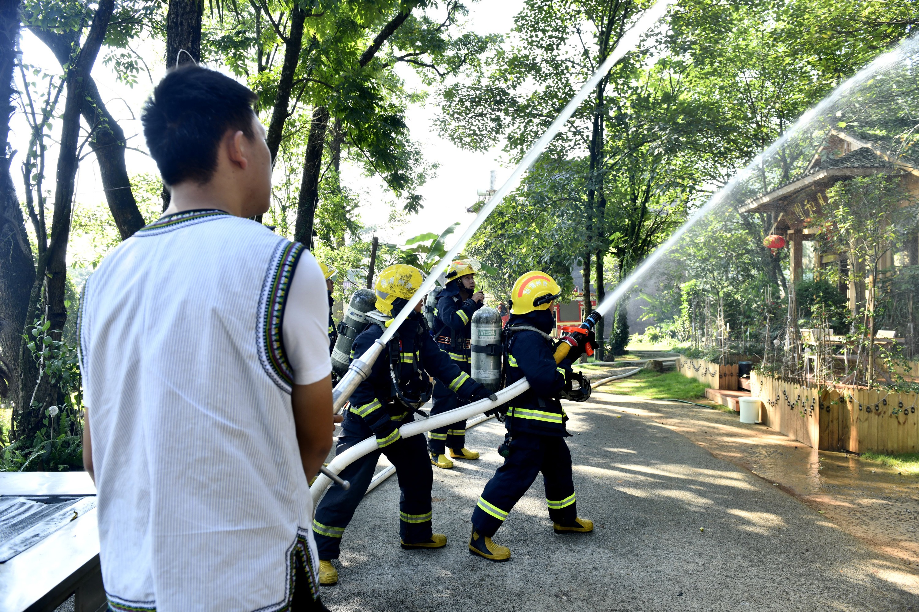 为认真贯彻落实州委州政府领导关于全面做好2023年国际山地旅游暨户外运动大会消防安全保卫工作要求,提升消防救援队伍与单位微型消防站的协同配合能力,9月3日,贵州省黔西南州消防救援支队在兴义市纳具和园康养小镇举行了消防综合应急演练。