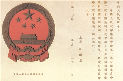 ▲1950年9月20日,中华人民共和国国徽图案正式诞生。