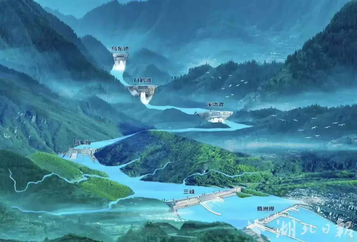 从金沙江下游的乌东德、白鹤滩、溪洛渡、向家坝,到壮阔的三峡工程,再到万里长江第一坝葛洲坝,清洁能源走廊跨越1800公里,水位落差超900米,安装110台水轮发电机组,总装机容量7169.5万千瓦,占全国水电装机容量的近五分之一。