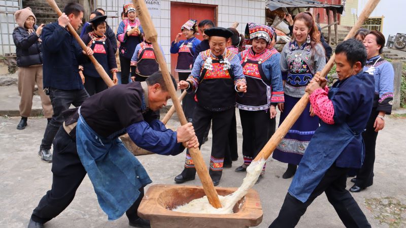 杀年猪,吃杀猪饭:冬至后,腊月里,贵州农村家家户户都会宰头猪,请亲戚朋友左邻右舍来吃一顿热热闹闹的杀猪饭,亲朋好友围坐在丰盛美食桌前分享快乐,大块吃肉、大碗喝酒,带来的不只是热火朝天的年味,也寓意着来年大丰收。杀猪饭,贵州有的地方又称“庖汤饭”。