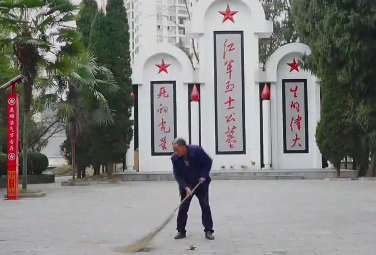 每天清晨,在贵州省仁怀市鲁班红军烈士陵园里,一个瘦削的身影已经开始了一天的忙碌。76岁的郭德刚手握扫帚,从陵园入口开始,一级一级清扫着95级台阶,动作缓慢却一丝不苟。