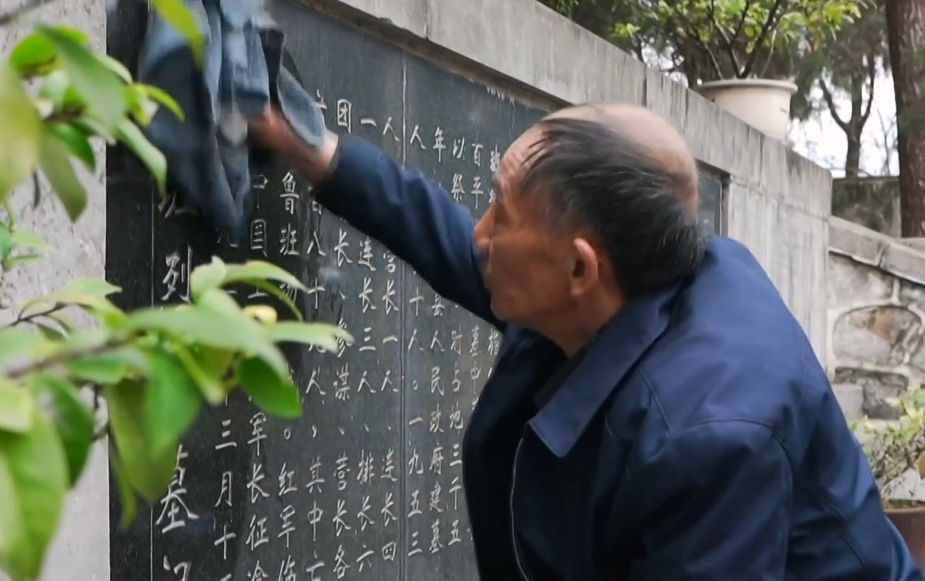 除了日常的清扫守护,郭德刚还主动承担起义务讲解的职责。为了讲好红军故事,他查阅史料、走访当地老人,收集整理鲁班场战斗的细节和烈士事迹,把每一段历史、每一个故事都熟记于心,融入自己的深情与敬意。多年来,无论是清明祭扫的群众、前来研学的学生,还是慕名而来的游客,只要走进陵园,郭德刚都会热情接待,用朴实的语言,一遍又一遍地讲述那段烽火岁月,让每一位来访者都能感受到革命先烈的英勇无畏,传承红色基因。截至目前,他已累计开展义务讲解2000多场,用声音传递着跨越时空的红色力量。