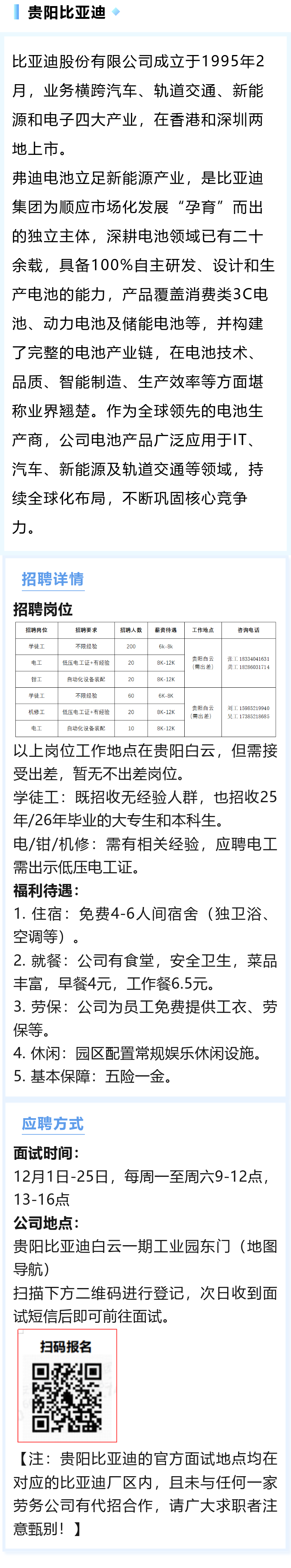 贵阳比亚迪招聘!月薪6000~12000元!五险一金!免费住宿!