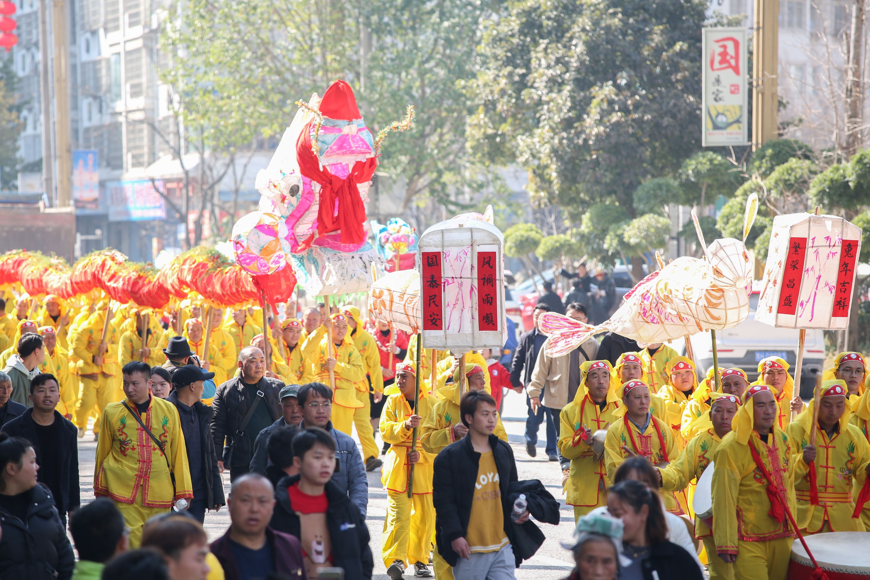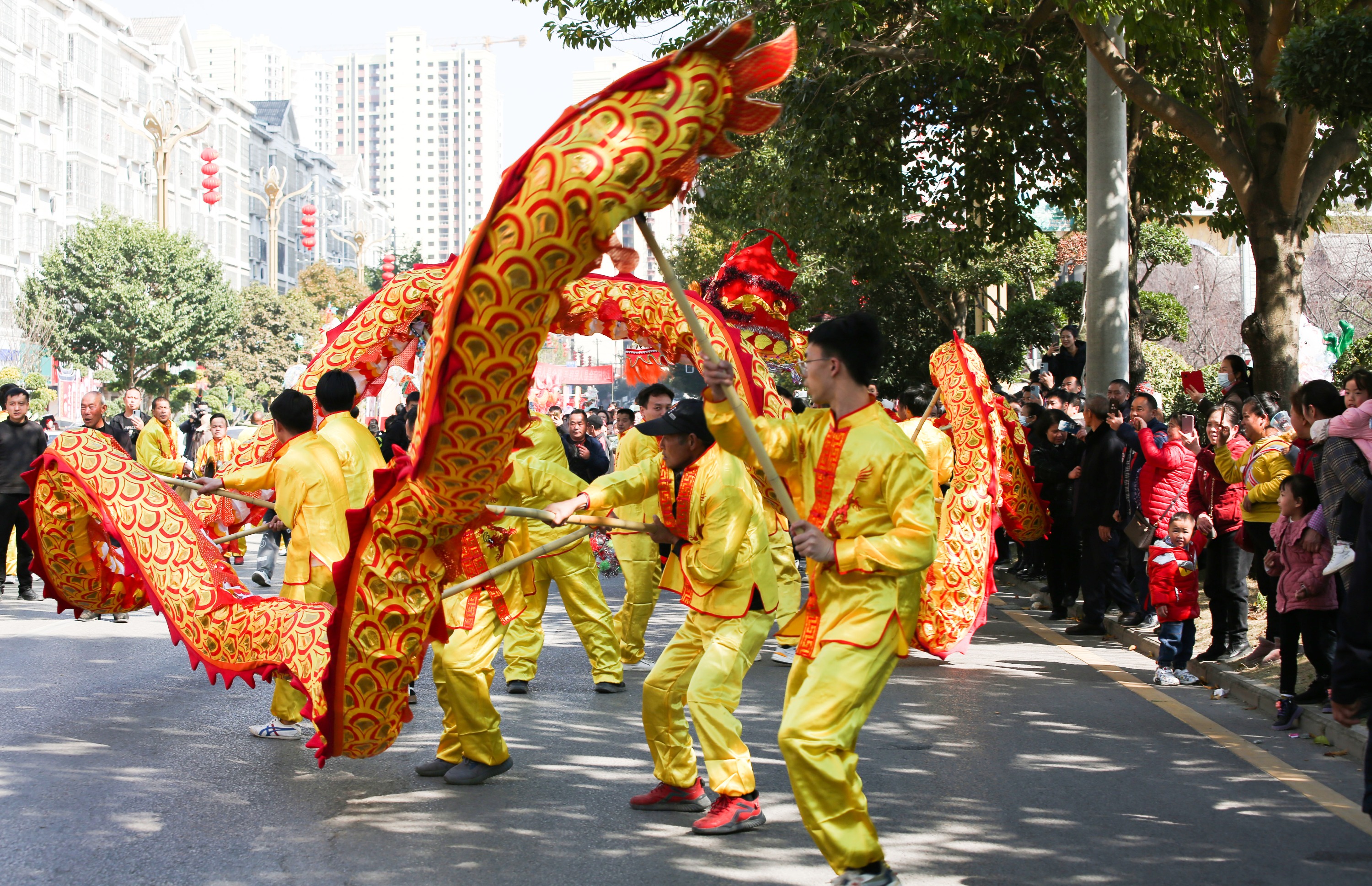 上午,在县书院路街头,一阵阵欢快热烈的锣鼓声响起,10余条龙灯队舞动龙灯,巡游正式拉开序幕,各式熠熠生辉的龙灯、花灯、花车和精彩绝伦的表演在观众的欢呼声惊叹声掌声中行进。