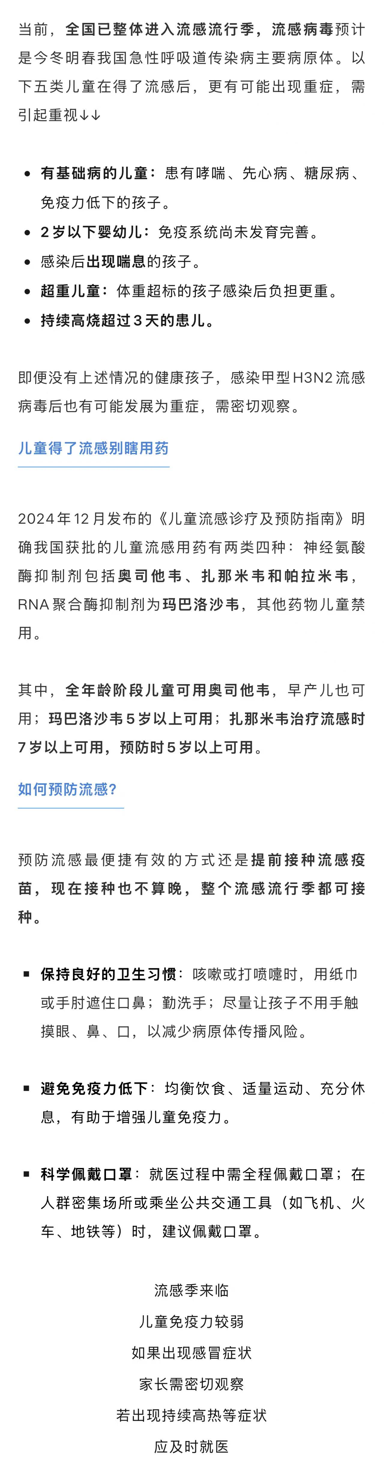 儿童得了流感别瞎用药