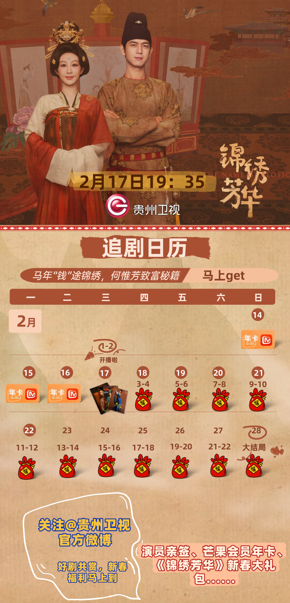 芒果TV视频会员年卡、剧照亲签、《锦绣芳华》新春大礼包