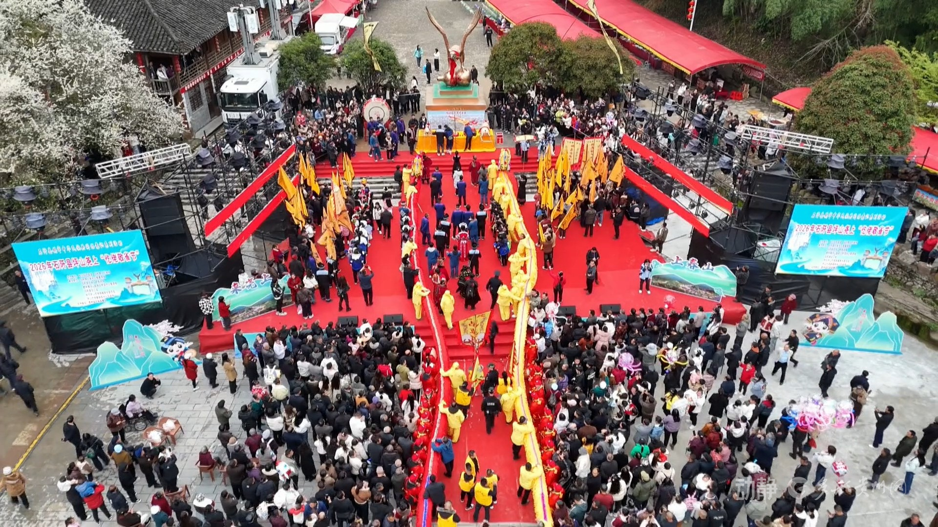 春到佛顶山,情满仡佬寨。农历二月初一(3月19日),2026年石阡仡佬族敬雀节在贵州省铜仁市石阡县坪山乡佛顶山村尧上民族文化村启幕。这场以“来尧上·上春山”为主题的非遗盛会,将持续至3月22日,为游客奉上一场可看、可玩、可吃、可住的民俗体验之旅。