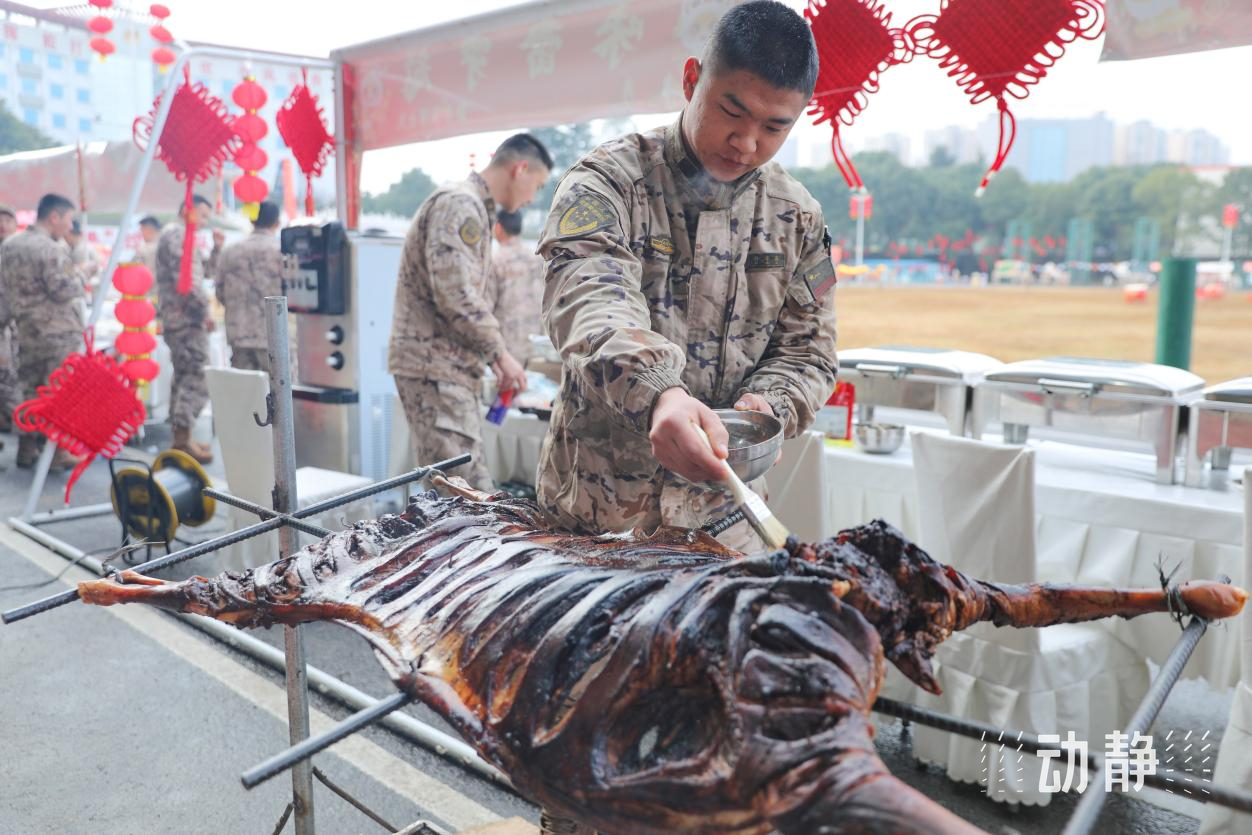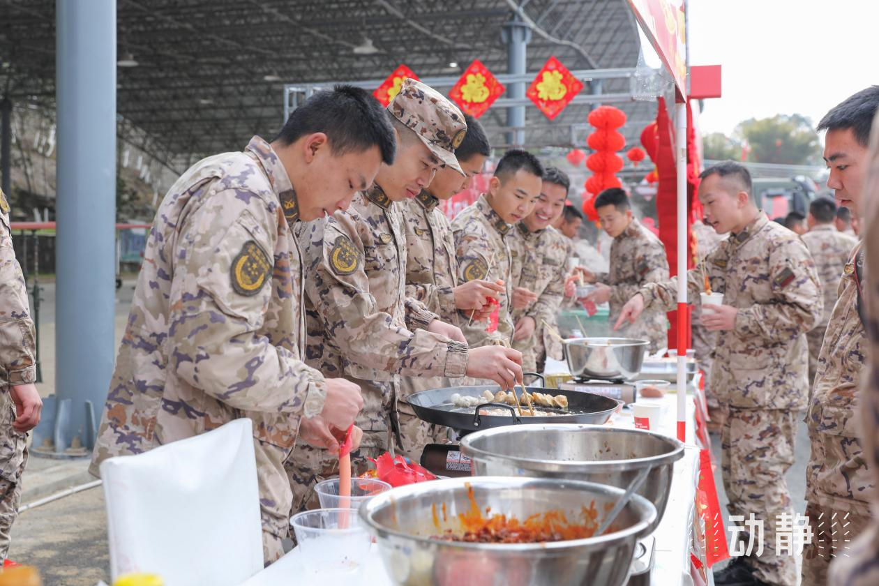 美食区既有热气腾腾、象征团圆的饺子,又有香甜可口、充满童年回忆的糖葫芦等传统春节小吃,还有经过改良创新的部队特色行军干粮。大家围坐在一起,一边品尝着美食,一边分享着训练、生活中的点滴趣事。