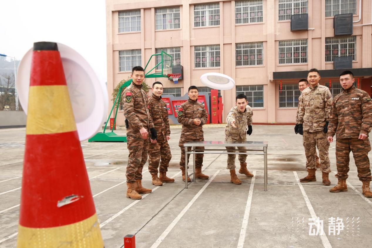 武警贵州总队毕节支队官兵正开展飞盘、乒乓球绕杆、车轮滚滚等趣味游戏。
