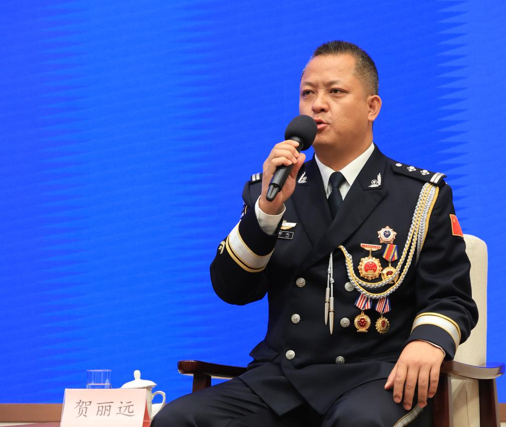贺丽远在记者会上。 新华社记者任沁沁 摄