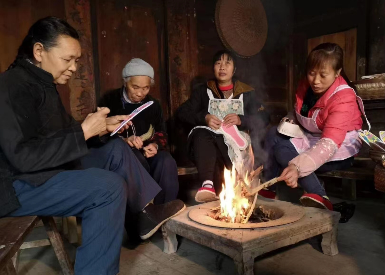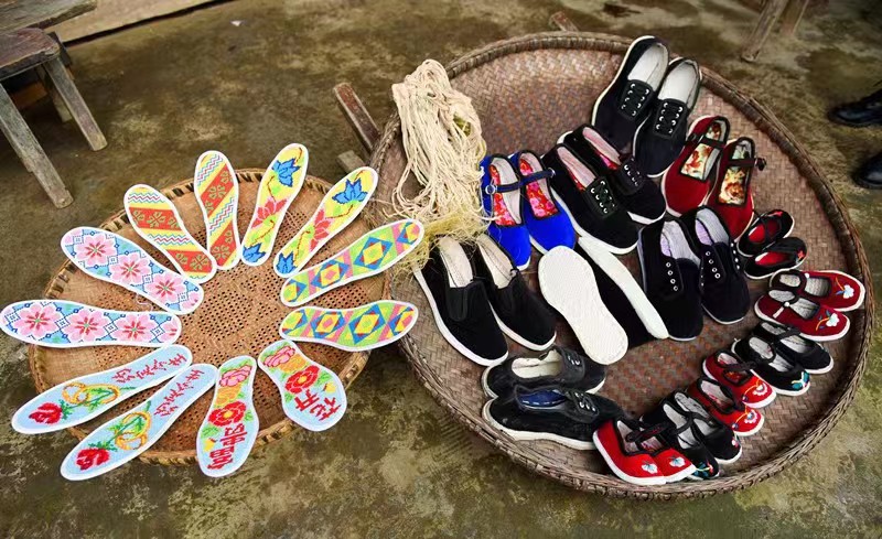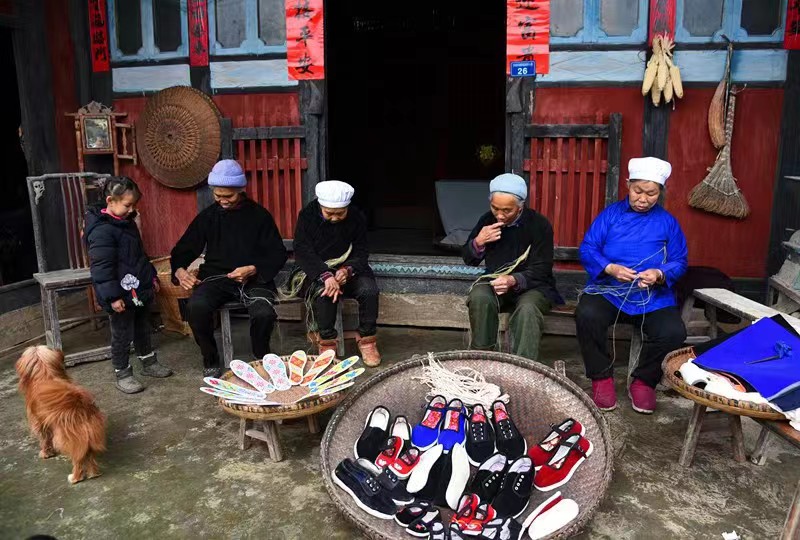 进化镇沙坝村是凤冈县文化资源厚重、丰富的村子之一。县级非物质文化遗产“滩阳手工布鞋”也面临传承困难,县委统战部出资10余万元,修建了“滩阳手工布鞋传习所”。传习所通过“党建+支部+合作社+手工艺者”的方式带动当地传承手工布鞋,村民们只负责做鞋,合作社通过互联网线上销售、抖音带货等方式给村民们销售。如今,合作社已带动了26名手工艺者从事业余和农闲季节的布鞋制作。