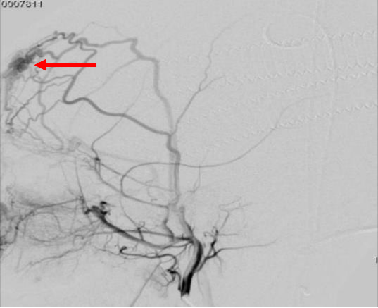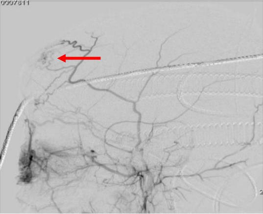 拓展延伸;动静脉畸形(Arteriovenous malformation,AVM)是最危险的脉管异常,表现为红色、温暖、有搏动感的病变。是一种高流量的先天性血管畸形,由扩张的动脉和静脉组成,异常的动静脉之间缺乏正常毛细血管床。局部可出现疼痛、溃疡或反复出血,严重者因长期血流动力学异常可致心力衰竭。动静脉畸形还引起外观畸形,重要组织器官受压及功能损害等。动静脉畸形治疗困难,复发率高,过去由于对该病的认识及技术限制,主要以手术治疗为主,外科手术在无水乙醇介入栓塞出现以前,一直是治疗动静脉畸形的主要方法。手术切除创伤大,病灶切除后组织缺损,造成患毁容、残疾,无法彻底切除病灶复发率极高。无水乙醇可破坏血管内皮细胞,是一种效果彻底的治疗方法。但误栓可引起周围正常组织坏死、重要器官功能丧失 (如失明), 甚至是心肺衰竭死亡。该治疗必须由经验丰富的专科医师实施,以尽可能减少严重并发症的发生。