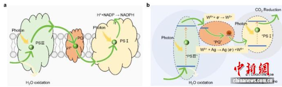 研发团队介绍说,植物通过光合作用,巧妙地将结构简单的二氧化碳和水转化为复杂的养分分子,为人类借助化学手段实现温室气体二氧化碳的资源化利用提供了自然范例。然而,人工模拟光合作用的过程仍面临科学挑战,其关键瓶颈在于:光激发功能材料所产生的电子(用于还原二氧化碳)与空穴(用于氧化水)寿命极短,难以实现二者反应的同步与持续进行。
