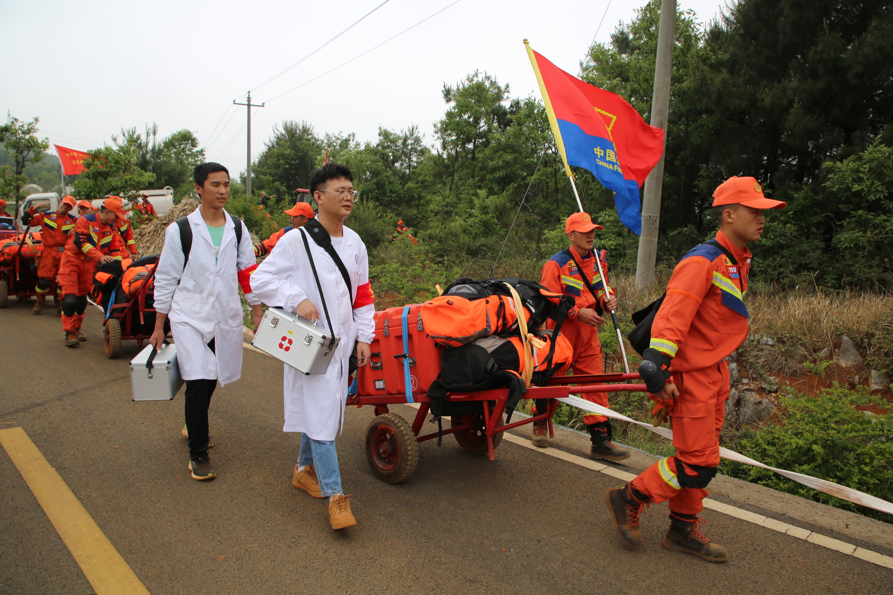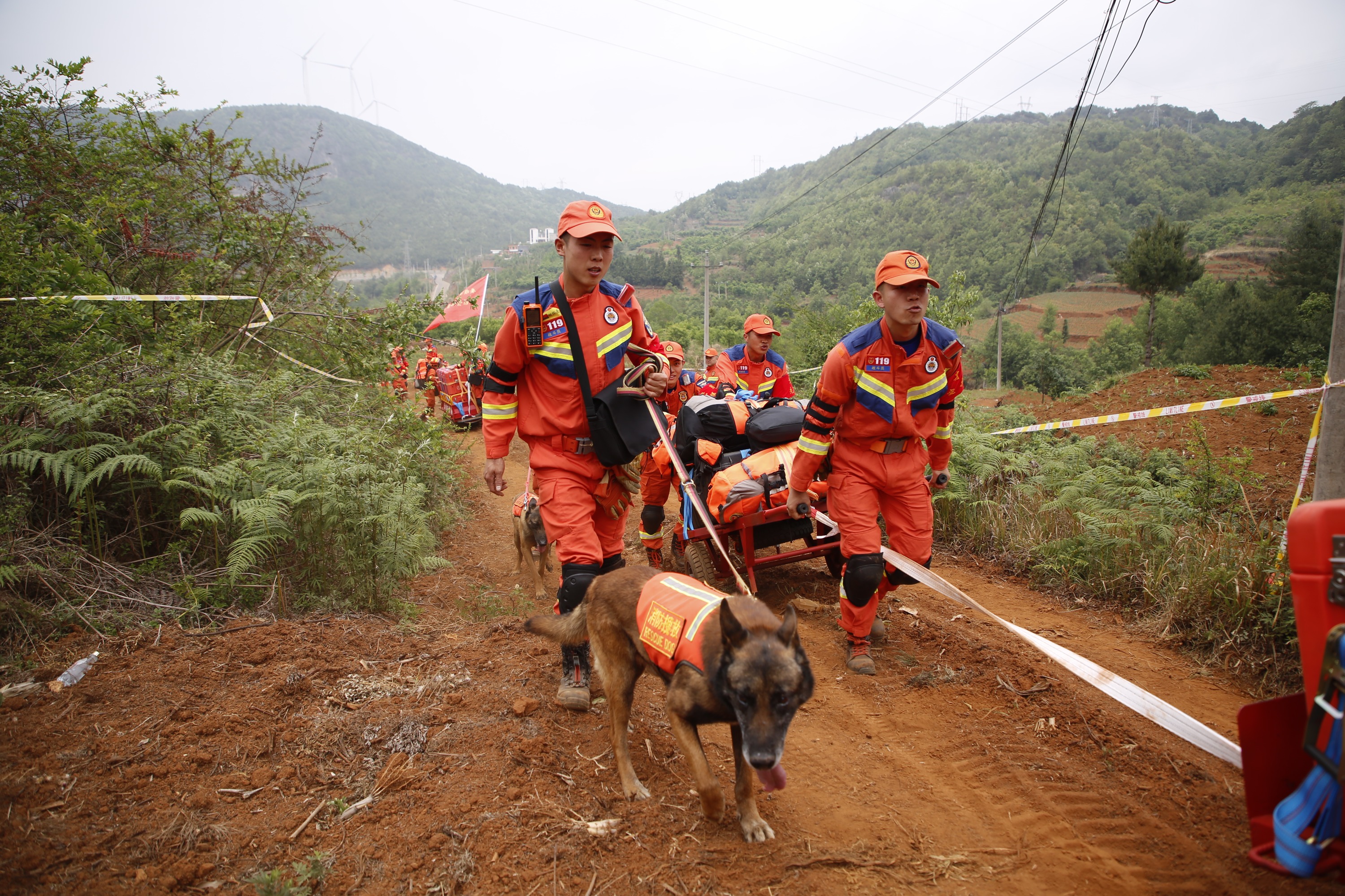 接到总队调度后,安顺市消防救援支队地震救援轻型搜救队集合21车90人的精干力量,携带5大模块器材装备共计1635件套、2只搜救犬、72小时自我保障物资火速赶赴“灾区”进行救援。