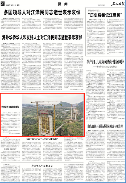 今天(12月5日),《工人日报》刊发图片新闻《金州大桥工程加紧建设》。