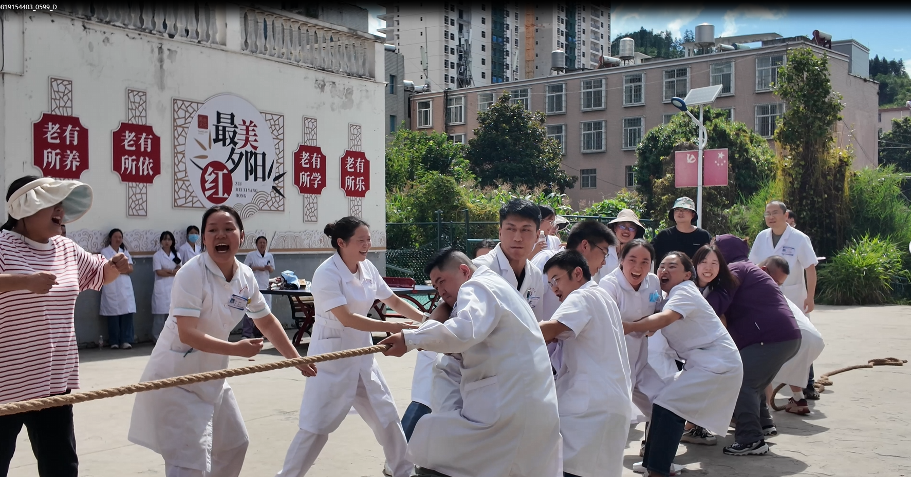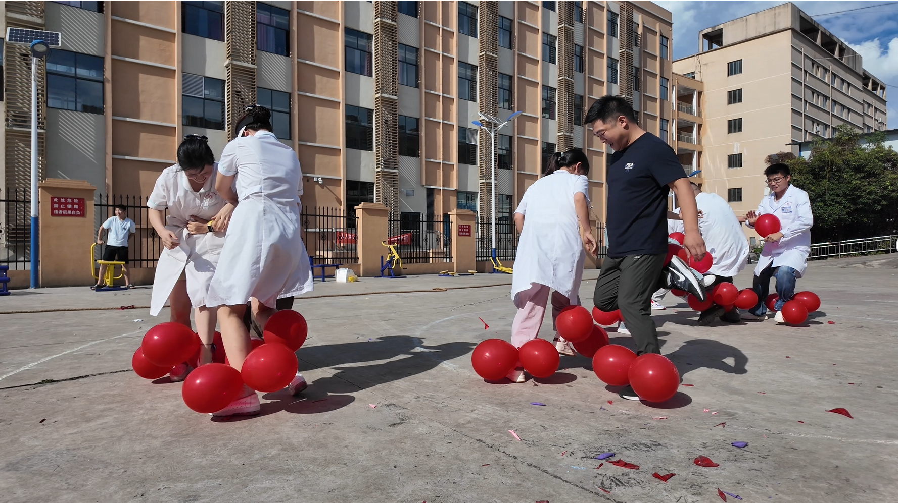 座谈会结束后,全体职工移步颐养阁前广场参与趣味文体活动。每个人都热情高涨,纷纷化身“运动健将”,全身心投入到每一个项目中。他们或奋力拔河,或默契配合,现场加油声,欢笑声此起彼伏,气氛热烈而温馨。通过系列趣味文体活动的开展,丰富了医师们的业余生活,营造和谐,进取,团结向上的文化氛围。