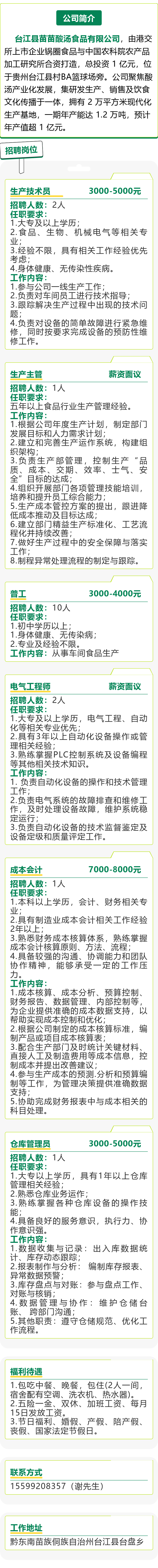 食品企业招聘生产技术员、普工、仓库管理员等岗位!月薪可达8000元!五险一金!包吃中餐、晚餐、包住!