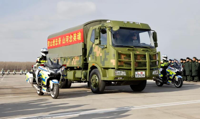 忠魂不泯,浩气长存。仪式结束后,志愿军烈士遗骸棺椁由48辆警用摩托组成的骑警车队护送前往沈阳抗美援朝烈士陵园。29日10时,第十一批在韩中国人民志愿军烈士遗骸安葬仪式将在该陵园志愿军烈士纪念广场举行。