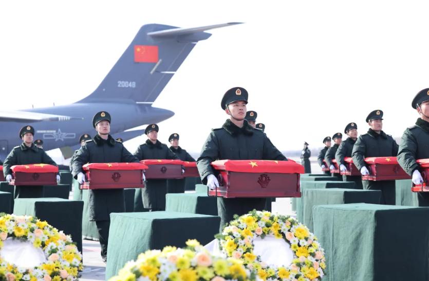 11月28日上午,第十一批在韩中国人民志愿军烈士遗骸回到祖国母亲的怀抱,43位志愿军烈士英灵及495件遗物由我空军专机从韩国接回并护送至辽宁沈阳。