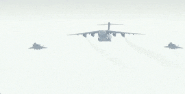 12时07分,空军专机运-20缓缓降落在辽宁沈阳桃仙国际机场。专机进入中国领空后,空军两架歼-20战斗机护航,并在沈阳机场上空通场,“双20”同框向志愿军烈士致以崇高敬意,沈阳桃仙机场以“过水门”航空最高礼仪迎接志愿军烈士遗骸回家。