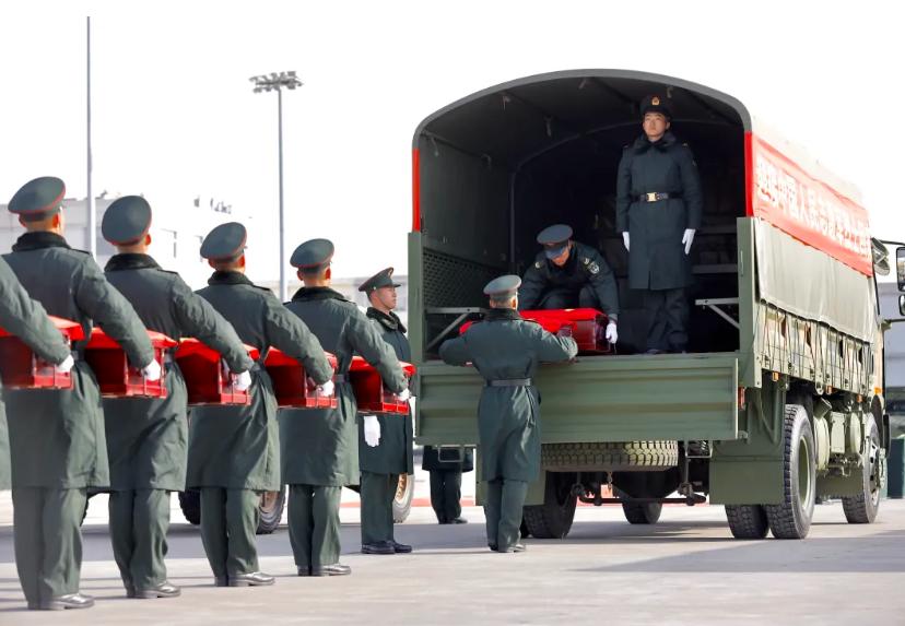 11月28日上午,43位志愿军烈士英灵及495件遗物由我空军专机从韩国接回并护送至辽宁沈阳。来源:新华社