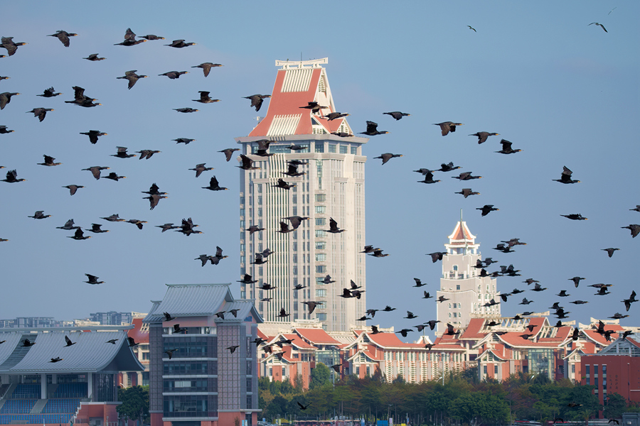 厦门:成群鸬鹚如约而至 万鸟齐飞场面壮观
