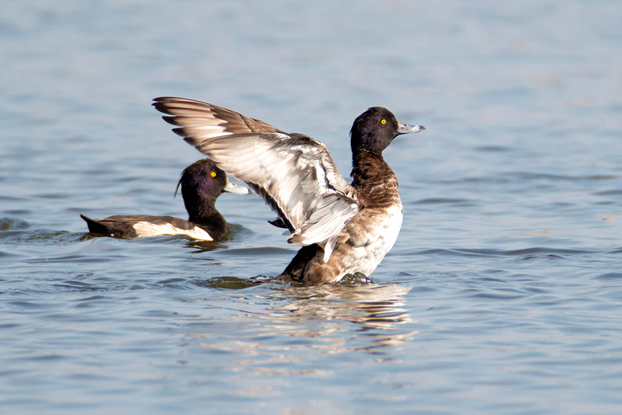凤头潜鸭在杏林湾水面上展翅。周龙杰摄