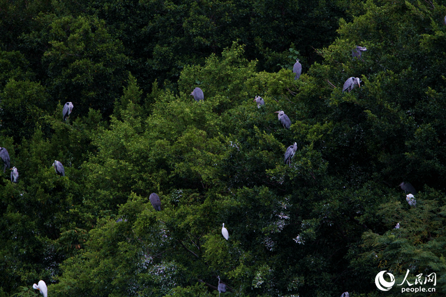 杏林湾畔的苍鹭和白鹭。人民网 陈博摄