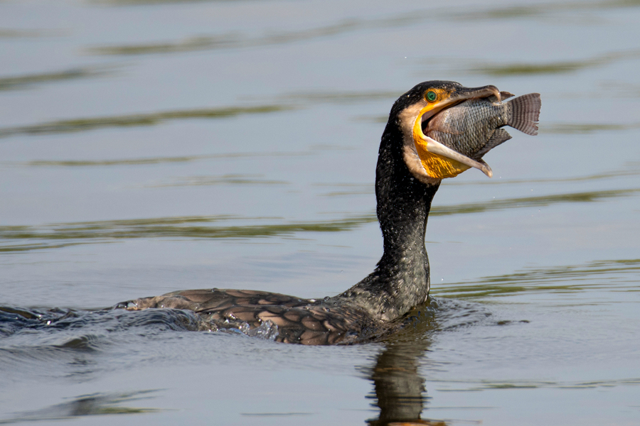 捕鱼成功的普通鸬鹚。周龙杰摄
