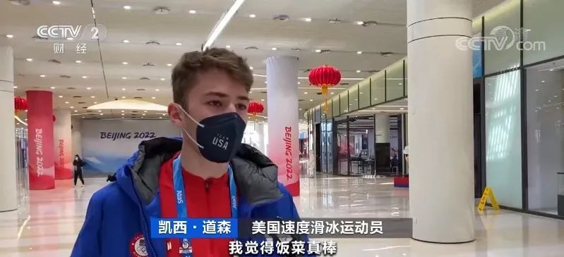 美国速度滑冰运动员凯西·道森:我觉得饭菜真棒,服务给力。工作人员将一切都弄得超干净,他们也尽一切可能保证我们的用餐安全,为我们提供合适的营养及其他服务,饺子超级美味。
