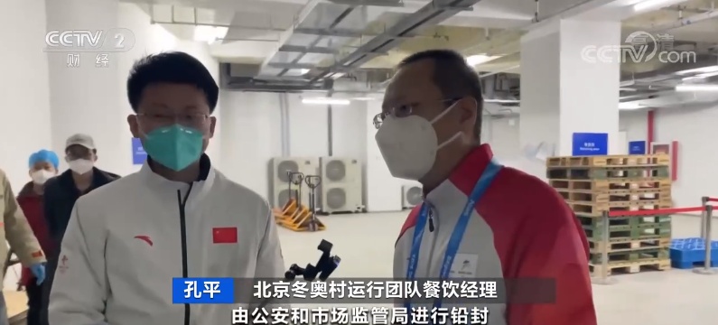 北京冬奥村运行团队餐饮经理孔平:装完之后会进行铅封,确保食品中途没有打开,保证食品安全。(记者张景 杨凯)