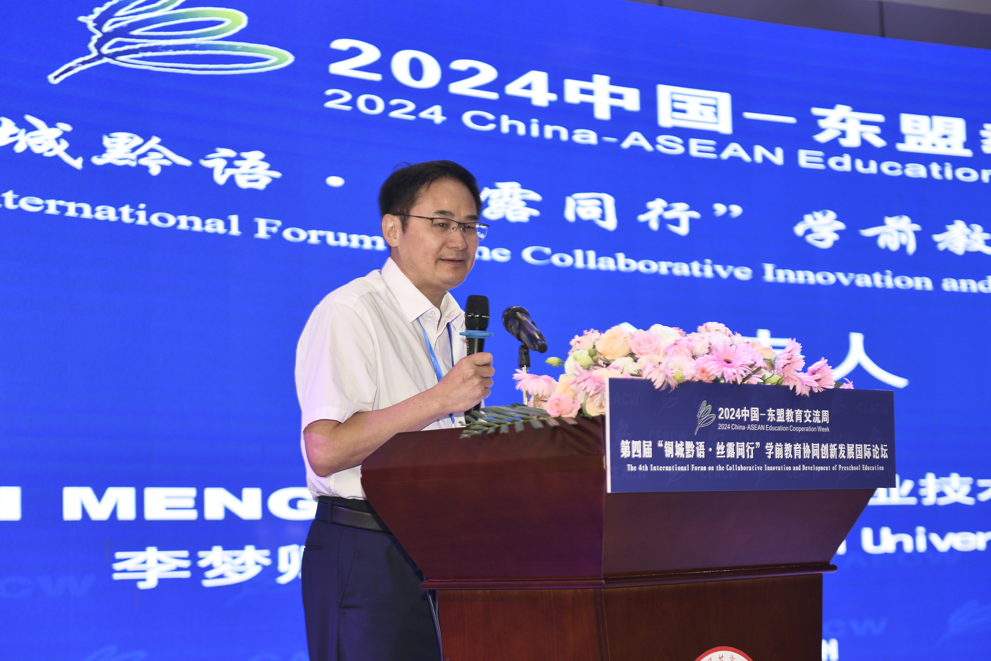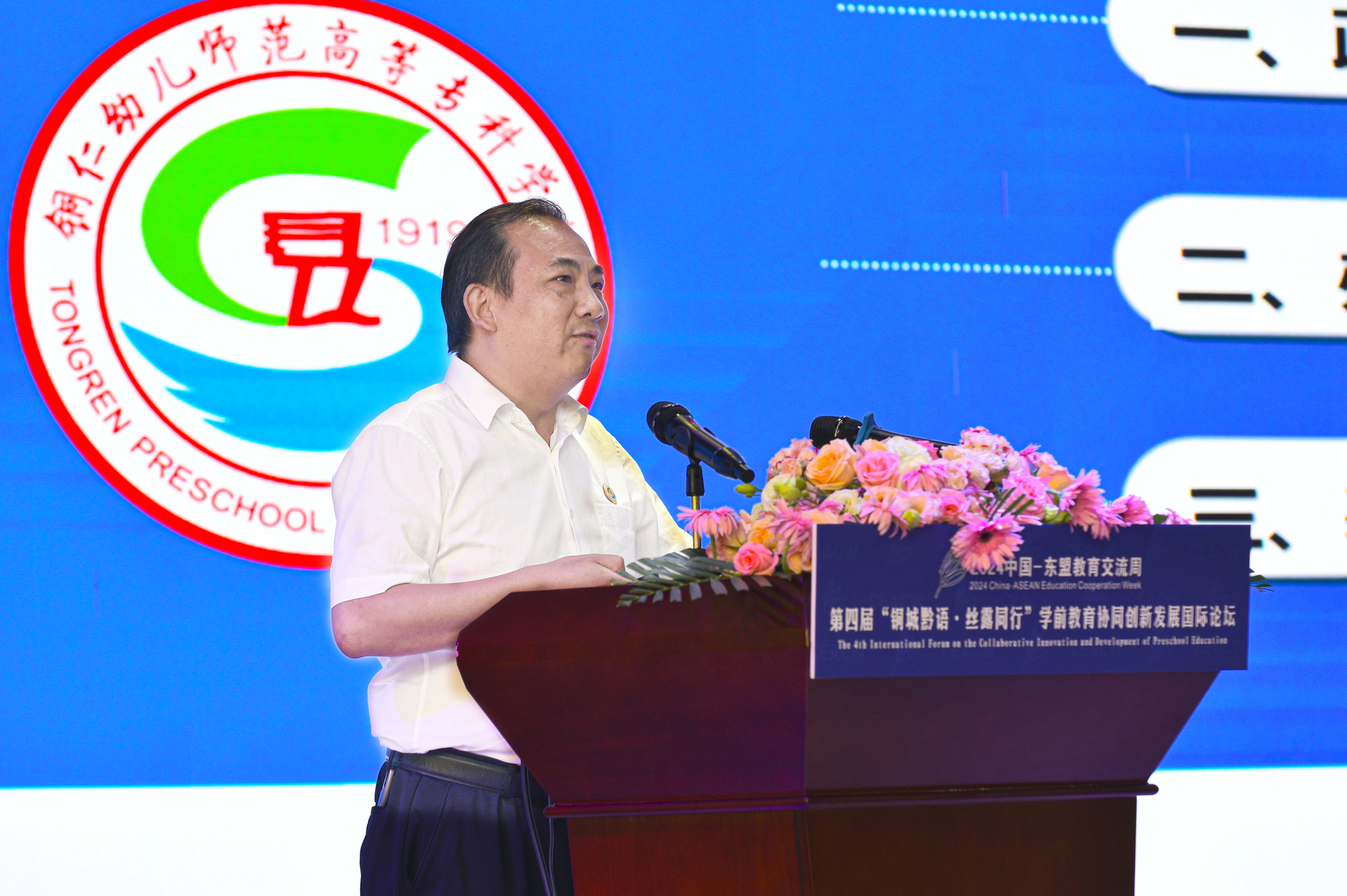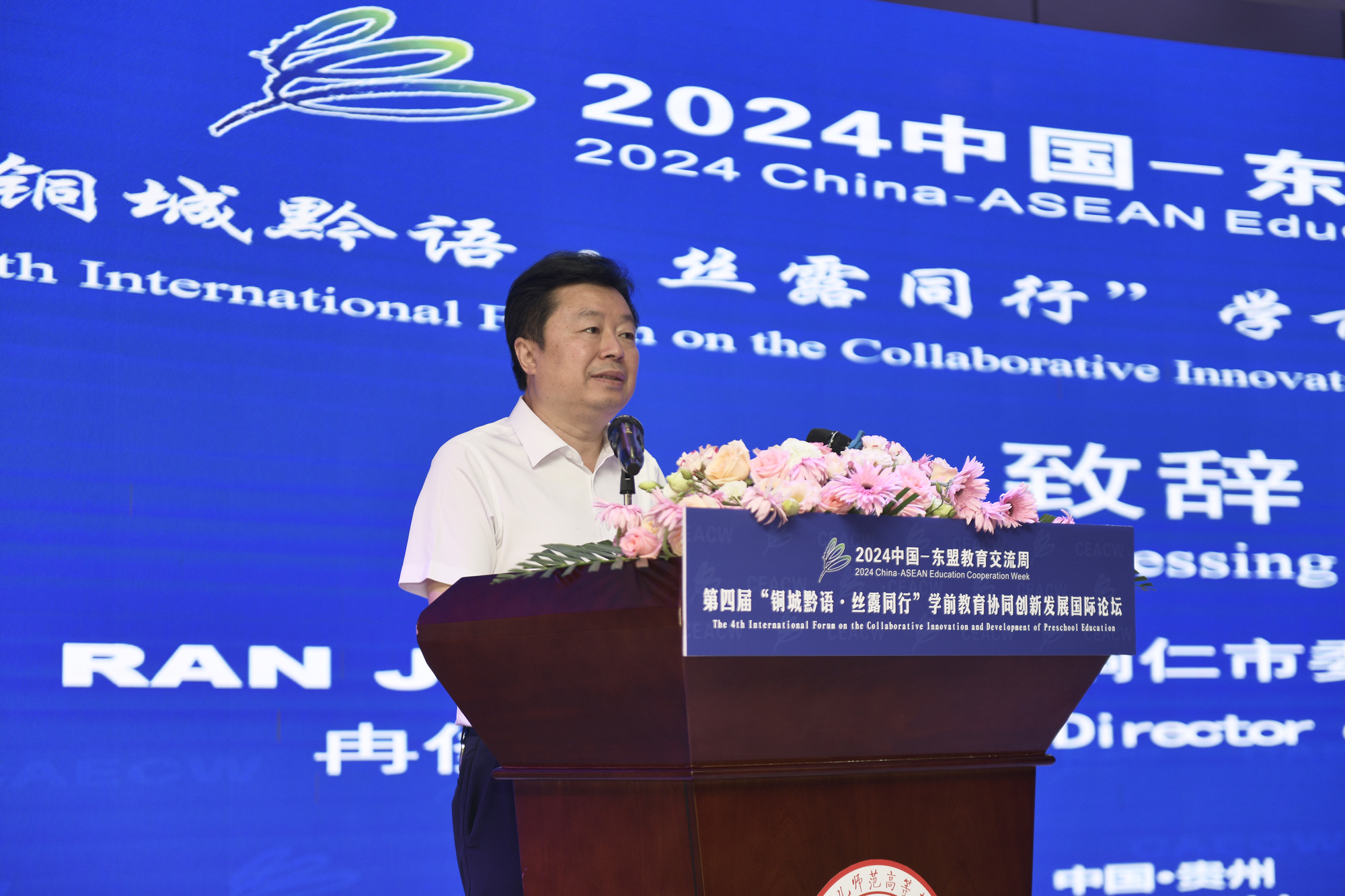 冉俊华在致辞中首先对各位嘉宾到来表示热烈欢迎,他指出,第四届“铜城黔语·丝露同行”学前教育协同创新发展国际论坛在铜仁幼儿师范高等专科学校召开,是铜仁市教育系统的一件大事、喜事,既充分展示铜仁教育高质量发展和国际化办学成果,又是推动学前教育对外开放合作交流的一次重要机遇。今天,各位中外学前教育领域知名专家学者齐聚一堂,共同交流学前教育发展前沿理论、前线经验,这必将推动铜仁市学前教育事业高质量发展,必将加快构建铜仁市教育对外开放新格局。