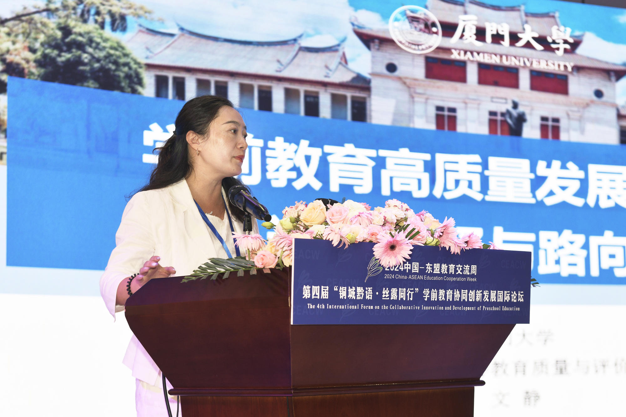 8月22日,由铜仁幼儿师范高等专科学校主办,深圳大学、厦门大学高等教育质量与评估研究所、井冈山大学、东莞职业技术学院协办的第四届“铜城黔语·丝露同行”学前教育协同创新发展国际论坛在铜仁幼儿师范高等专科学校举行。本次论坛以“规范·协同·创新——加快建设学前教育高质量发展保障体系”为主题,邀请厦门大学等30多所院校、15个国家共1200位多外国内外专家通过多上线下的方式参与讨论。