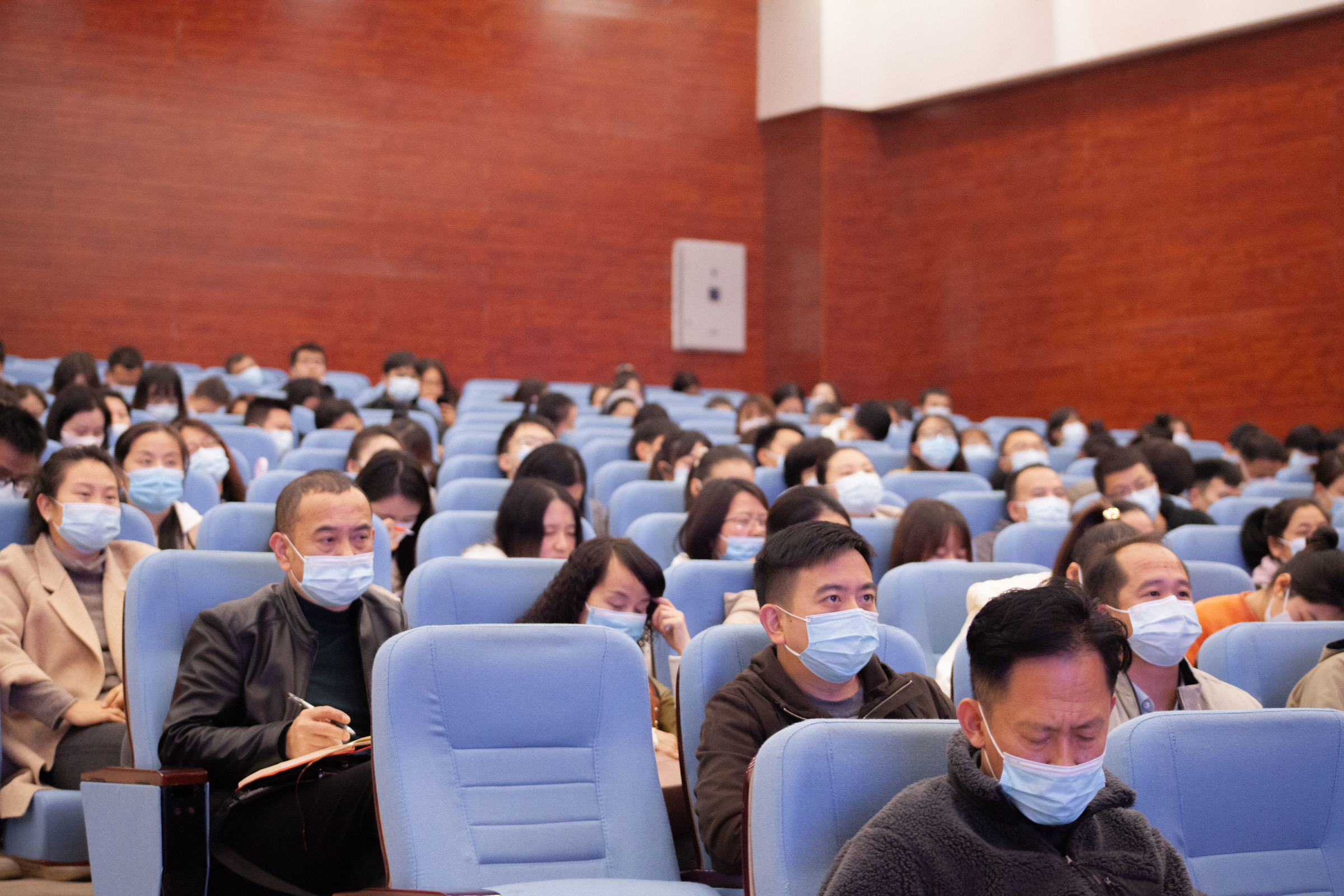 2022年11月25日下午,培训在学术报告厅开讲,学院党委副书记黎洪、全体教职工、学生预备党员和第4期发展对象培训班学生学员到现场听课。