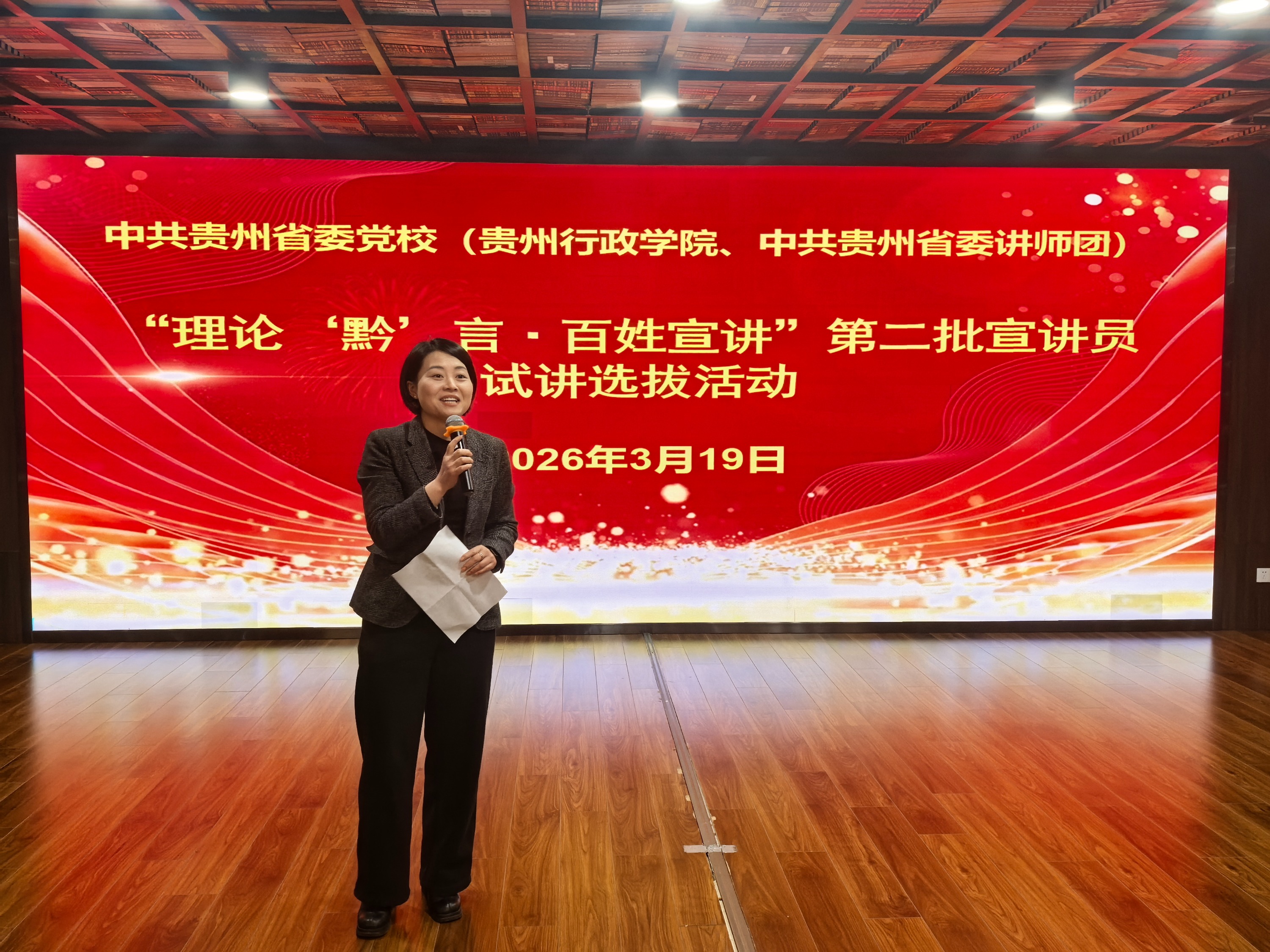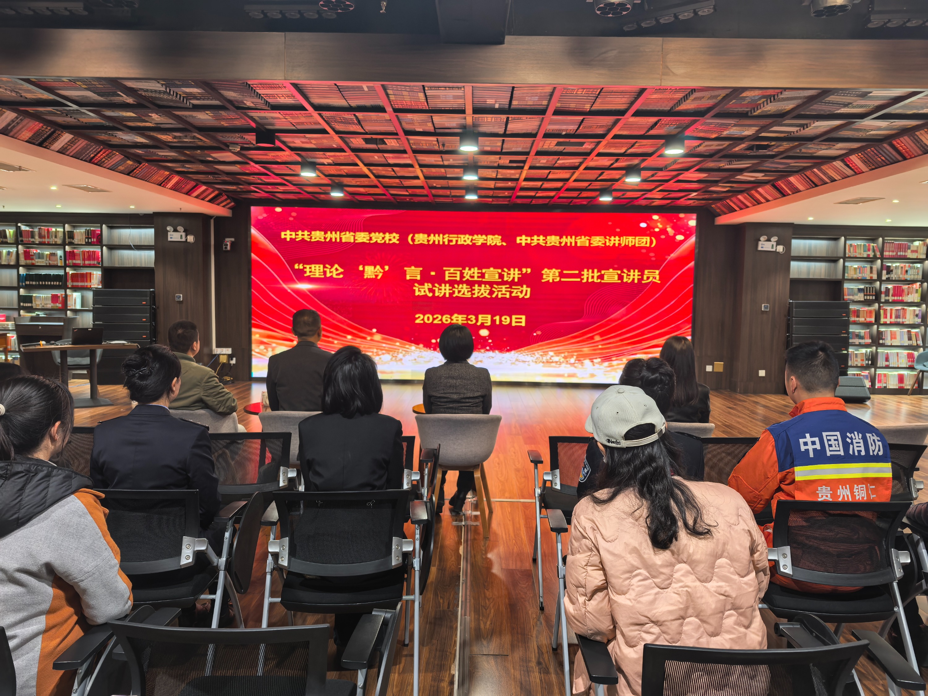 3月19 日下午,中共贵州省委党校(贵州行政学院、中共贵州省委讲师团)“理论‘黔’言・百姓宣讲” 第二批宣讲员试讲选拔活动,在省委党校薪火书局顺利举行。本次活动聚焦树立和践行正确政绩观,持续面向全省选拔储备优秀“百姓宣讲”人才。