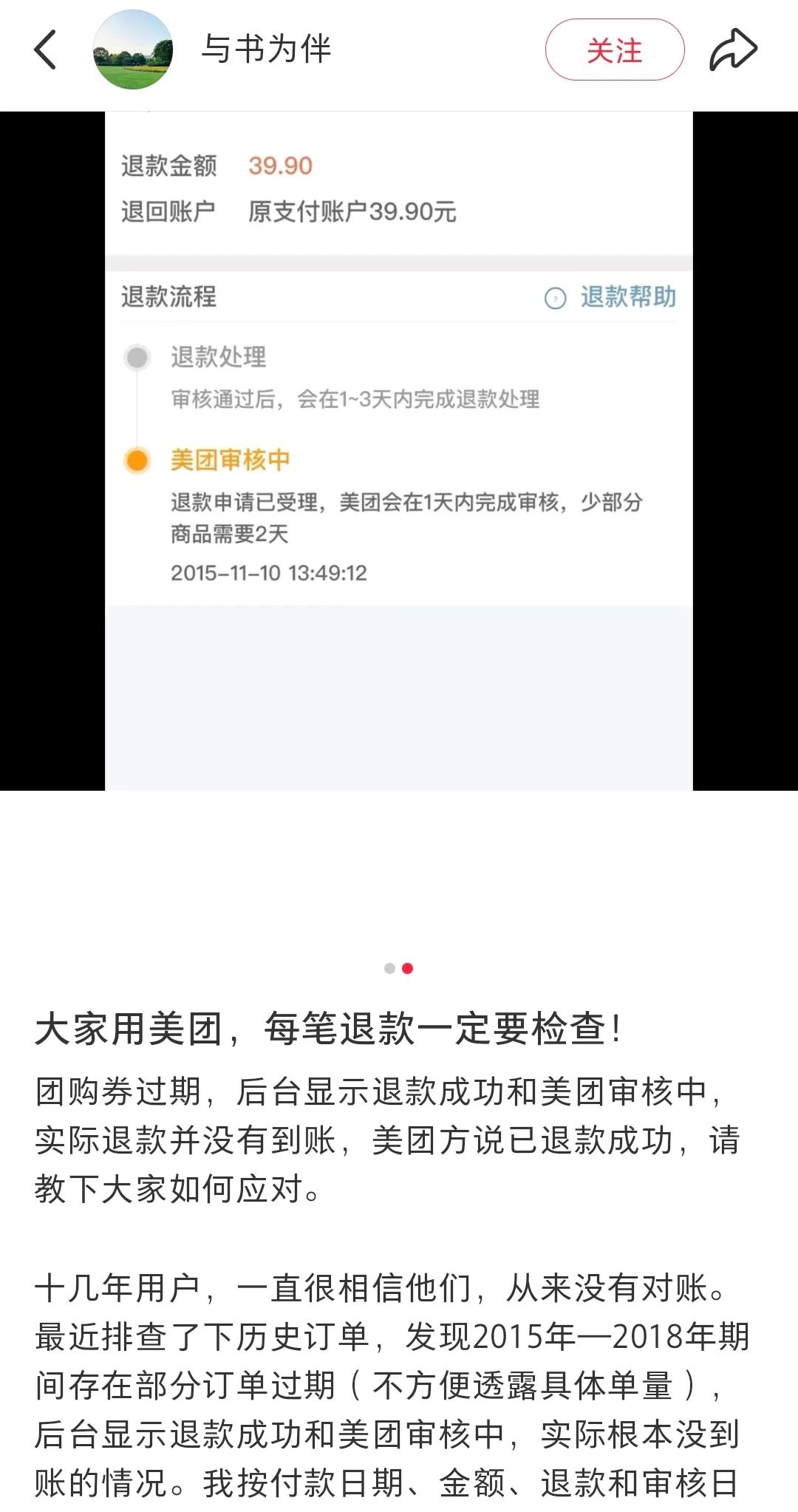 不过,近日,有网友发帖称,在团购券到期后,美团显示“退款成功”或“美团审核中”,但相关的退款迟迟没有到账,“大家用美团,一定要检查每笔退款!”