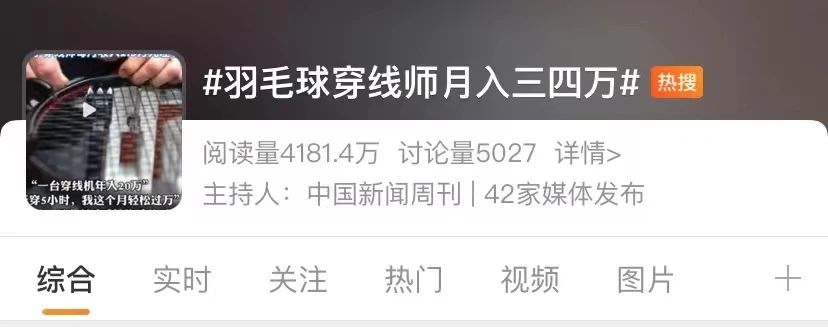 “羽毛球拍穿线师月入三四万元”等话题