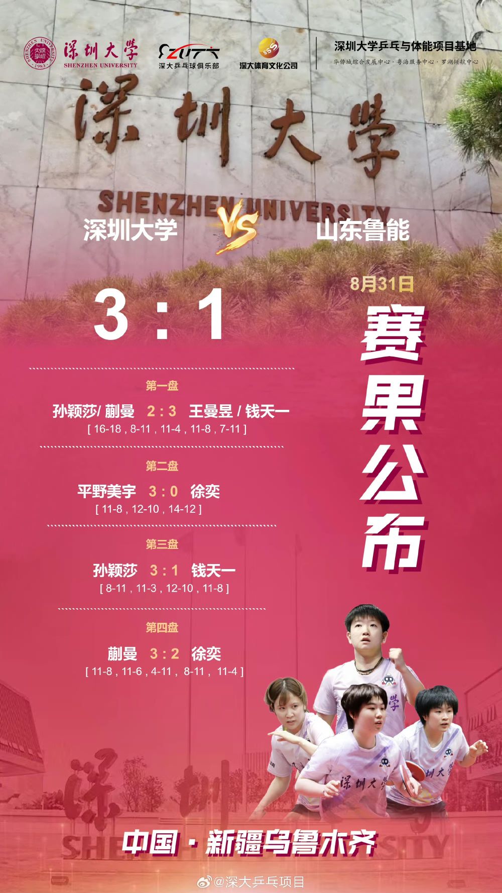 图为深圳大学队官方微博发布的“战报”