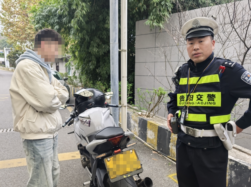 11月4日晚,根据上级工作任务安排,南明交警五、六中队在南明区沙冲路骨科医院路段设置飙车炸街查缉卡点,开展飙车炸街以及酒醉驾查缉工作。21时42分,一辆号牌为贵ANxxxx的普通二轮摩托车从消防总队方向驶来,同时伴随着刺耳的轰鸣声,于是民警便示意该车靠边接受检查。