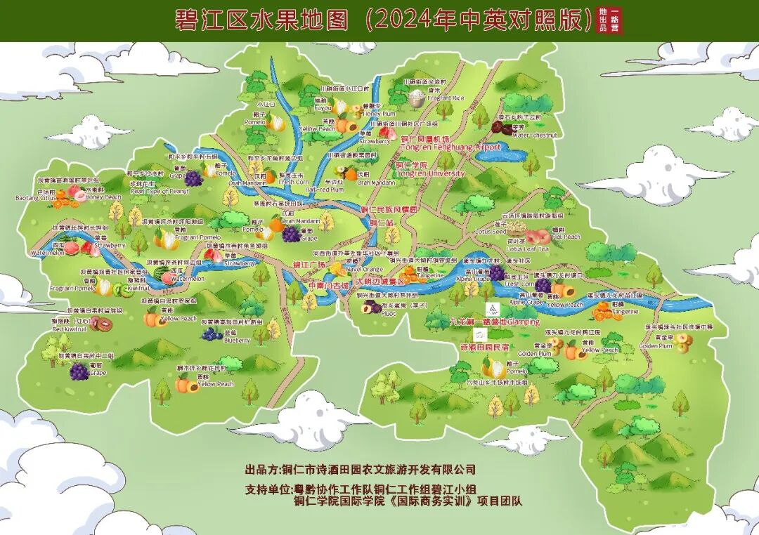此外,碧江区全力推动农文旅深度融合,首次发布“向黔飞・粤游碧江 黔程万里”农文旅品牌线路及中英对照版铜仁中南门茶店地图、水果地图,打造坝黄等精品水果带,有效串联东西两线农文旅热点。通过在东莞成功举办“桃源铜仁・水韵碧江”旅游推介会,充分发挥农文旅品牌跨区域推广的首发效应,持续增强碧江区域品牌的辐射力和影响力。