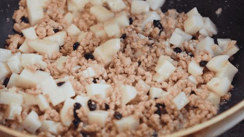 4.馅料炒好后盛盘备用。